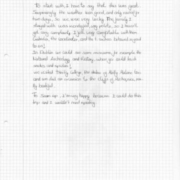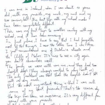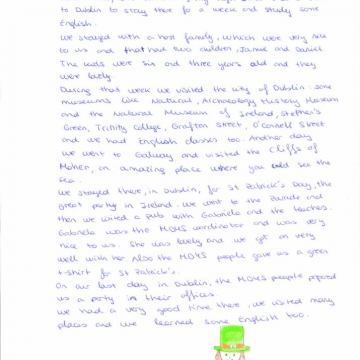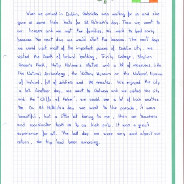 Last month I spend a week in Dublin. I stayed with another student in a host family, but we did a lot of activities during the day with all the group. I liked the experience a lot, b...