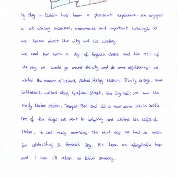 My stay in Dublin has been a pleasant experience. We enjoyed a lot visiting museums, monuments and important buildings, as we learned about the city and its history.We had four hours a day o...