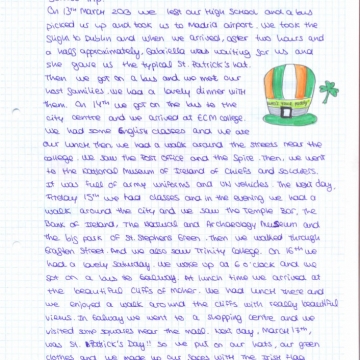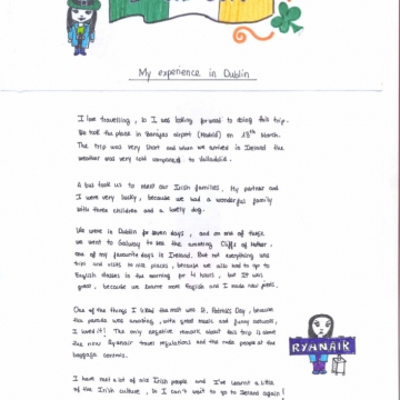 Last month I went to Dublin with my classmates on a school trip.On 13th March 2013 we left our high school and a bus picked us up and took us to Madrid airp...