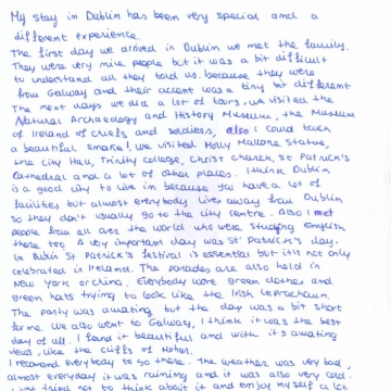 My stay in Dublin has been very special and a different experience.The first day we arrived in Dublin we met the family. They were very nice people but it was a bit difficult to understand...