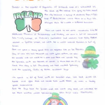 This was the first time I visited Dublin. I felt very excited and nervous before going because I didn't know the family.I didn't know if I would like them and if they'd like me too.We arrived home o...
